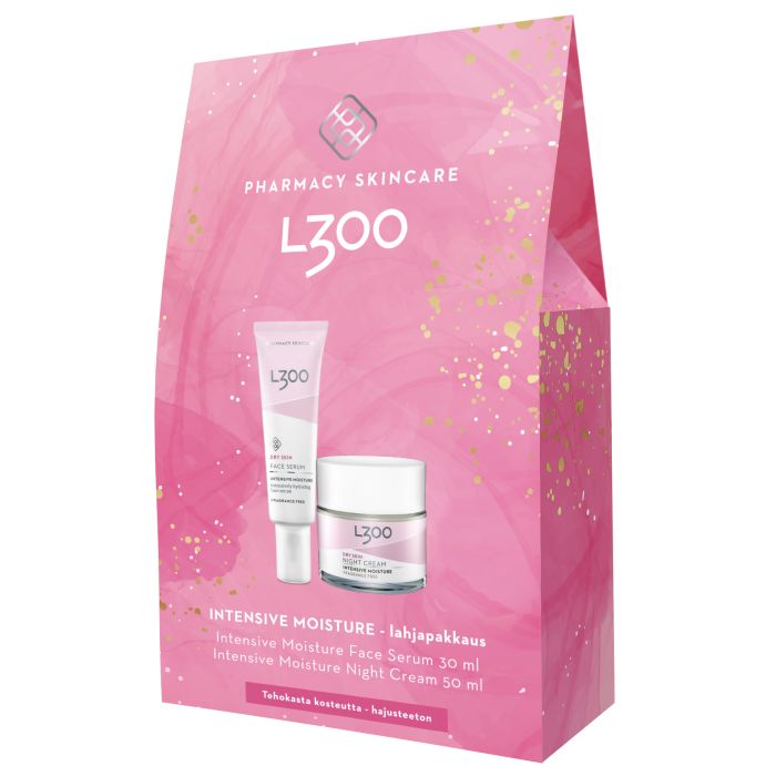 L300 Intensive Moisture lahjapakkaus sisältää Intensive Moisture Face Serum kasvoseerumin 30 ml, Intensive Moisture Night Cream yövoiteen 50 ml.