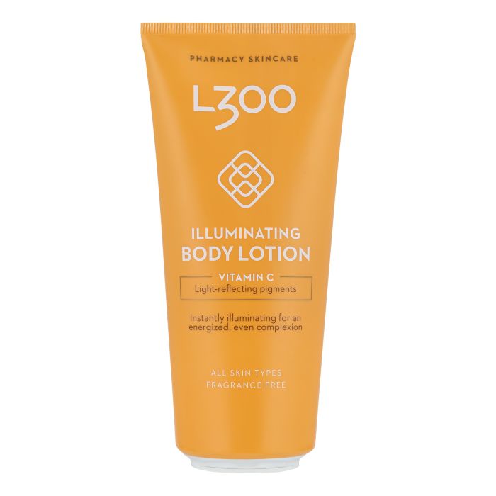 L300 Vitamin C Illuminating Body Lotion on mieto vartalovoide, joka antaa ihollesi kosteutta ja hehkua. Valoa heijastava pigmentti antaa ihollesi raikkaan hehkun välittömästi. Tuloksena on kosteutettu, sileä ja silkinhohtoinen iho. Dermatologisesti testattu. Hajusteeton. Sopii kaikille ihotyypeille.