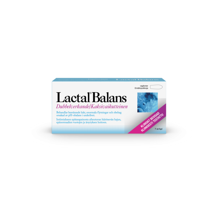 Intiimialueen epätasapainosta aiheutuvan häiritsevän hajun, epänormaalien vuotojen ja ärsytyksen hoitoon. Lactal Balans -emätinpuikko vaikuttaa kahdella tavalla: se sekä palauttaa että säilyttää intiimialueen luonnollisen tasapainon.
