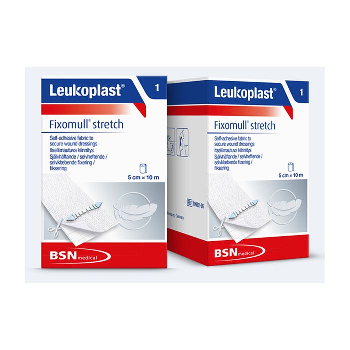 Fixomull Stretch dressing fixation on itsekiinnittyvä kiinnityssidos haavasidosten kiinnittämiseen. Fixomull Stretch -kiinnityssidoksella voi kiinnittää haavasidoksen mihin tahansa kohtaan kehoa, erityisesti nivelten kohdalle. Se sopii myös anturien, katetrien ja mittalaitteiden luotettavaan kiinnittämiseen. Poikittaisvenyvä sidos on joustava ja mukautuu hyvin kehon muotoihin. Ei paina, purista eikä haittaa verenkiertoa. Fixomull Stretch -kiinnityssidos kiinnittyy heti kestävästi ja läpäisee hyvin sekä ilmaa että vesihöyryä. Suojaa epäpuhtauksilta, sopii hyvin myös herkkäihoisille potilaille ja on helppokäyttöinen ja monipuolinen. Materiaalina on polyakrylaattiliimalla päällystetty polyesteri.