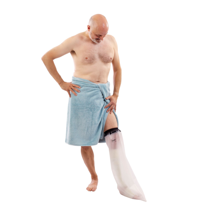 Vaivaton ja kestävä suihkusuoja suojaa haavasidoksia, kevennyksiä ja ja kipsiä vedeltä suihkun ja kylvyn aikana