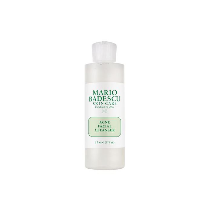Mario Badescu Acne Facial Cleanser on hellävarainen, mutta tehokas puhdistusgeeli rasvaiselle, epäpuhtaalle iholle. Päivittäiseen käyttöön sopiva tuote sisältää salisyylihappoa, joka kuorii ihoa ja ehkäisee epäpuhtauksien syntymistä. Aloe vera, kamomillauute, glyseriini ja hyaluronihappo kosteuttavat ja rauhoittavat ihoa.