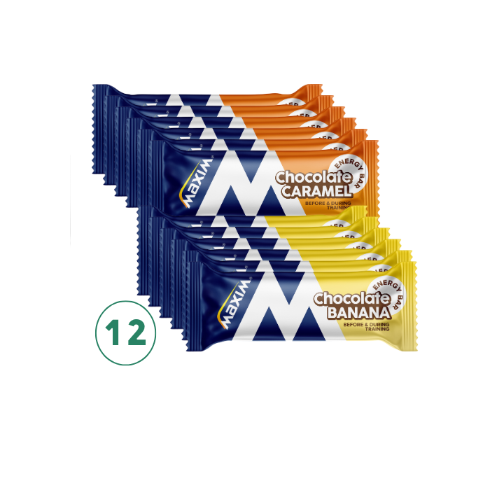 Maxim Energiapatukoista saat lisävirtaa ennen suoritusta, suorituksen aikana - tai vaikkapa välipalana. Energiapatukka sisältää myös 10g proteiinia. Edulliseen säästöpakkaukseen valittavissa kahta herkullista makua; Chocolate Banana ja Chocolate Caramel