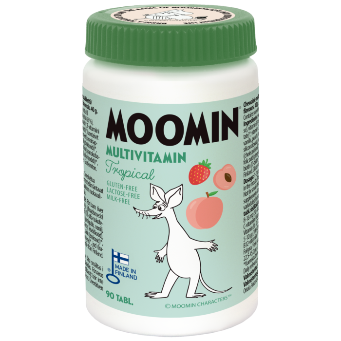 Persikan- ja mansikanmakuinen lapsille suunniteltu monivitamiinipurutabletti. Tuote on makeutettu hammasystävällisellä ksylitolilla. Tabletin voi pureskella tai imeskellä. Yli 3-vuotiaille lapsille ja aikuisille.