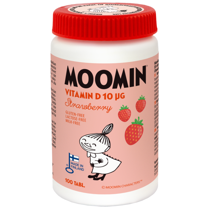 Ainesosat Makeutusaine (ksylitoli 77 %), täyteaine (inuliini, mikrokiteinen selluloosa), paakkuuntumisenestoaineet (rasvahappojen magnesiumsuolat, piidioksidi), luontainen mansikka-aromi, D3-vitamiini (kolekalsiferoli) (EU ja muu kuin EU), väri (punajuuriväri). Gluteeniton. Laktoositon (laktoosia 0 g). Maidoton.