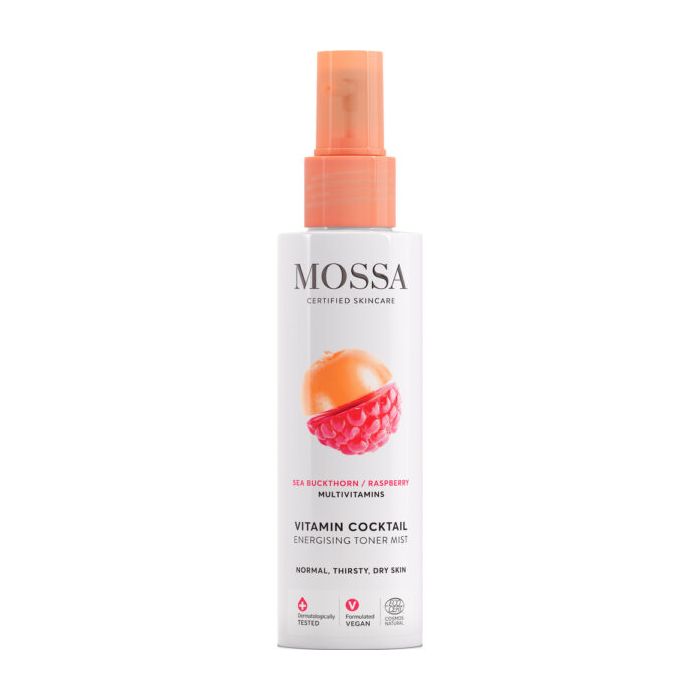 Mossa Vitamin Cocktail Energisoiva kasvovesi on kosteuttava, virkistävä ja tasapainottava kasvovesisuihke saa ihon näyttämään heleältä ja hyvinvoivalta.