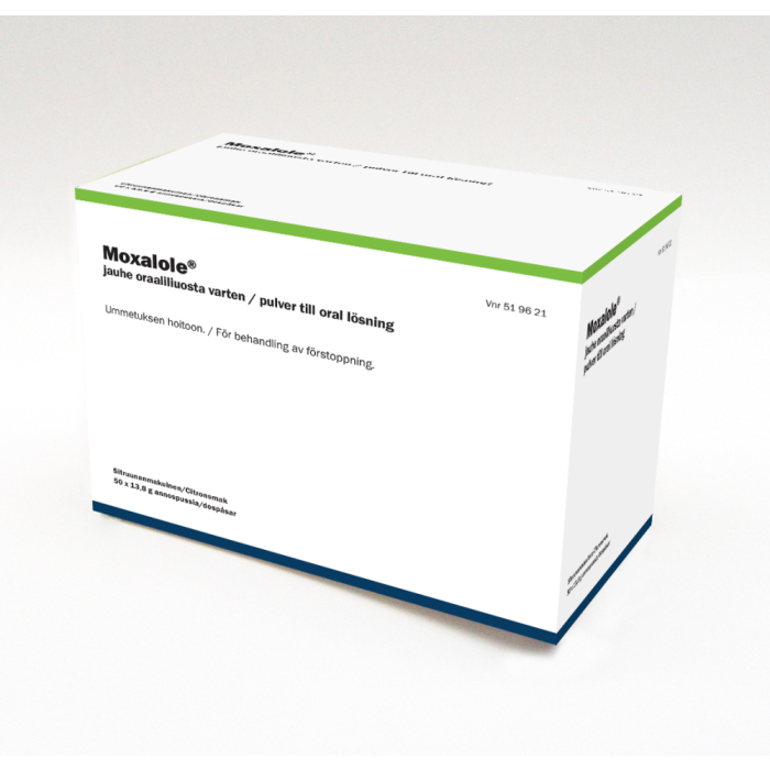 Moxalole helpottaa ulostamista pitkäaikaisenkin ummetuksen yhteydessä. Voit käyttää Moxalole- valmistetta myös hyvin vaikean ummetuksen, ns. ulostetukkeuman hoitoon, keskusteltuasi asiasta ensin lääkärin kanssa. Moxalolen sisältämä makrogoli 3350 lisää ulosteen määrää sitomalla siihen vettä, jolloin paksusuolen lihastoiminta normalisoituu. Tämän fysiologisena seurauksena pehmeän ulosteen eteneminen paksusuolessa nopeutuu ja ulostaminen helpottuu. Valmiste sisältää myös suoloja, joiden avulla varmistetaan, että hoito ei aiheuta suola- eikä nestetasapainon häiriöitä.