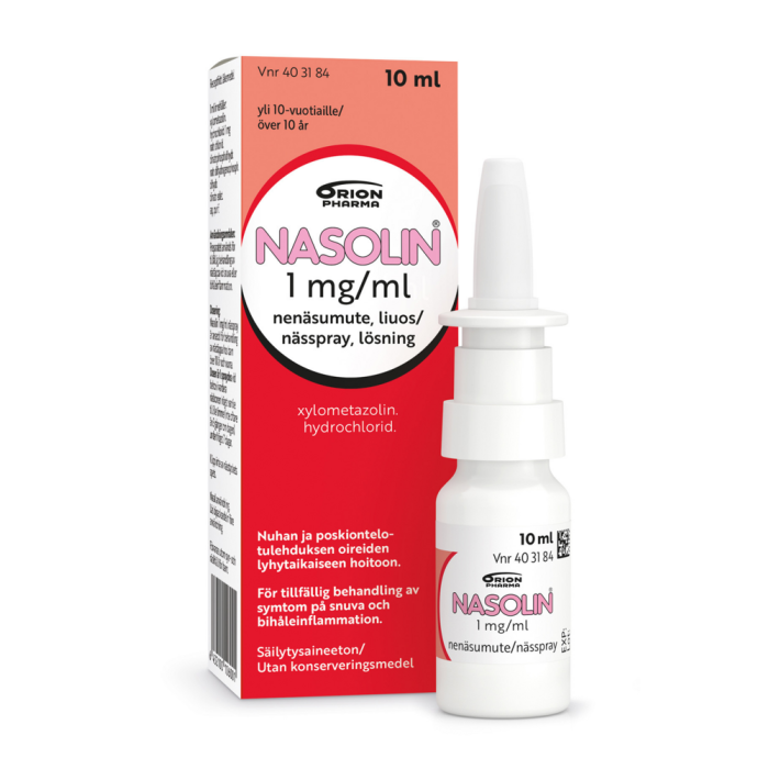 Nasolin on valmiste nuhaoireiden helpottamiseen flunssan aikana. Sen vaikuttava aine, ksylometatsoliini, vähentää nenän limakalvon turvotusta. Vaikutus alkaa nopeasti ja kestää 6–8 tuntia. Nasolin 0,5 mg/ml sumute soveltuu vain lyhytaikaiseen käyttöön 2-10 -vuotiaille lapsille. Sumutteet ovat säilöntäaineettomia.