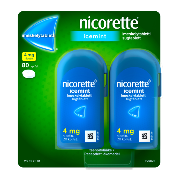 Nikotiinikorvaushoito voi auttaa sinua lopettamaan tupakoinnin tai vähentämään tupakointia ennen kokonaan lopettamista. 2 mg vahvuinen imeskelytabletti sopii tupakoitsijoille, jotka ovat polttaneet 20 tupakkaa tai vähemmän vuorokaudessa. 4 mg vahvuinen imeskelytabletti sopii tupakoitsijoille, joilla on voimakas nikotiiniriippuvuus (päivän ensimmäinen savuke 30 minuutin sisällä heräämisestä tai yli 20 savuketta päivässä). Huomaamaton imeskelytabletti sopii myös silloin, kun purukumia tai inhalaattoria ei voi käyttää. Alle 18-vuotiaille vain terveydenhuollon ammattilaisen suosituksesta.