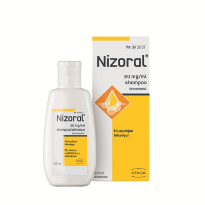 Nizoral-shampoo sisältää ketokonatsolia, joka on hiiva- ja muiden sienitulehduksien hoitoon tarkoitettu lääkeaine.