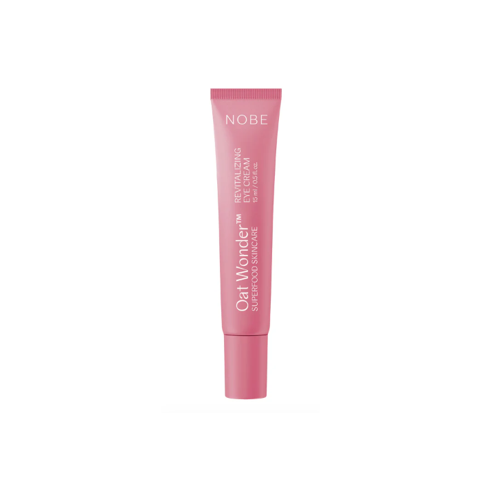 NOBE Oat Wonder® Revitalizing Eye Cream on ravitseva ja heleyttävä silmänympärysvoide, joka silottaa juonteita, vähentää väsymyksen merkkejä ja kosteuttaa herkkää silmänympärysihoa. Ihoa tehokkaasti elvyttävistä ainesosista koostuva voide auttaa palauttamaan levänneen ja virkistyneen ilmeen – myös päivinä, kun yöunet ovat jääneet vähäisiksi.