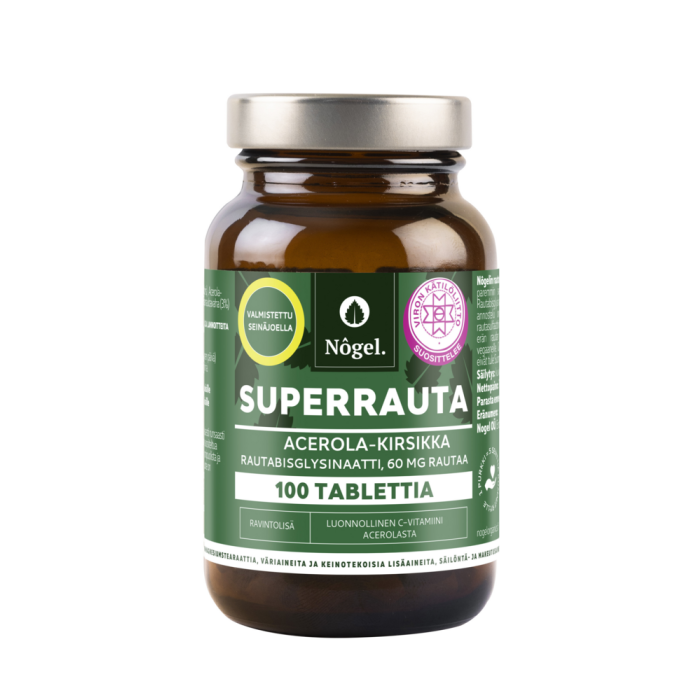 Ainesosat Rauta (rautabisglysinaatti), acerola-kirsikkajauhe (Malpighia emarginata)*, klorellajauhe (Chlorella vulgaris), karnaubavaha (3%)*. *Viljelty ilman keinotekoisia kasvinsuojeluaineita ja lannoitteita