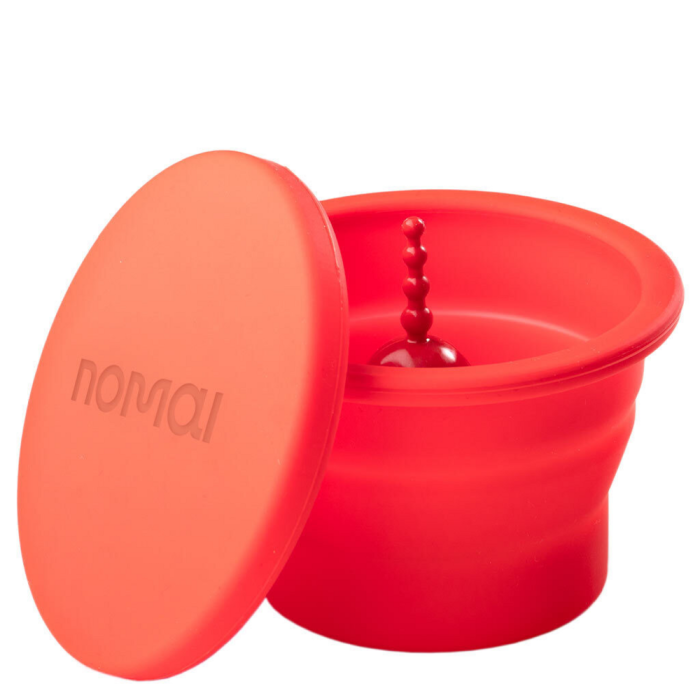 Nomai-kuukuppi asetetaan desinfiointiastiaan ja astia täytetään vedellä ¾. Kansi painetaan päälle jättäen se osittain auki toisesta reunasta. Desinfiointiastia laitetaan mikroaaltouuniin täydelle teholle noin 3-5 minuutiksi. Anna kuukupin olla kiehuvan kuumassa vedessä vielä noin 5 minuuttia. Nomai-kuukuppi on tämän jälkeen desinfioitu ja valmis käyttöön tai säilytykseen.