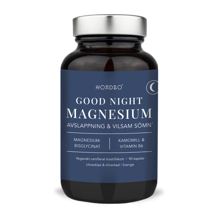 Nordbo Good Night Magnesium on täydellinen ravintolisä rauhalliseen yöhön. Valmiste sisältää biologisesti hyvin hyödynnettävissä olevaa magnesiumbisglysinaattia, rauhoittavaa kamomillauutetta ja B6-vitamiinia. Good Night Magnesium on kehitetty tukemaan rentoutumista ja laadukasta unta.