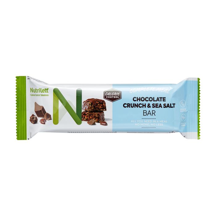 Nutrilett Chocolate Crunch & Seasalt -patukka on ateriankorvike, joka yhdistettynä tavalliseen vähäkaloriseen terveelliseen ruokaan auttaa sinua painonpudottamisessa tai -hallinnassa painonpudotuksen jälkeen. Patukka koostuu herkullisesta suklaacrunchista ja siinä on ripaus merisuolaa. Ateriankorvikkeet sisältävät runsaasti proteiinia, välttämättömät rasvahapot sekä vitamiineja ja kivennäisaineita vähintään kolmasosan päivän saantisuosituksesta. Tuote sisältää runsaasti kuitua. Nutrilett-ateriankorvikkeella voidaan korvata yksi tai kaksi päivän pääaterioista. Kahden pääaterian korvaaminen päivässä ateriankorvikkeella vähäenergiaisen ruokavalion yhteydessä auttaa painonpudotuksessa ja yhden pääaterian korvaaminen auttaa ylläpitämään painoa painonpudotuksen jälkeen. Tuotteessa käytetty kaakao on Rainforest Alliance -sertifioitu.
