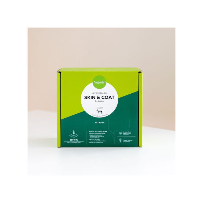 Nutrolin® Horse Skin & Coat on ainutlaatuinen, patentoitu ravintoöljy hevosille. Se sisältää runsaasti linolihappoa, joka on ihon ja turkin hyvinvoinnille välttämätön omega-6-rasvahappo. Lisäksi Nutrolin® Horse Skin & Coat sisältää linolihapon aineenvaihduntaa tehostavia omega-6 ja omega-3-sarjan rasvahappoja (GLA ja SDA) sekä runsaasti luonnollista E-vitamiinia, mutta ei lainkaan kalaöljyä. Kehitimme tämän ravintoöljyn kaikkien hevosten ihon ja karvapeitteen hoitoon.