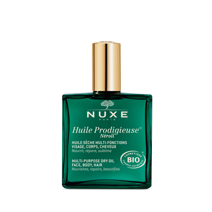 Huile Prodigieuse BIO NÉROLI Multi-Purpose Dry Oil, Face, Body, Hair on vegaaninen, luonnonmukainen, sertifioitu ylellinen monikäyttöinen kuivaöljy, joka kosteuttaa, ravitsee, korjaa ja kaunistaa ihoa ja hiuksia.