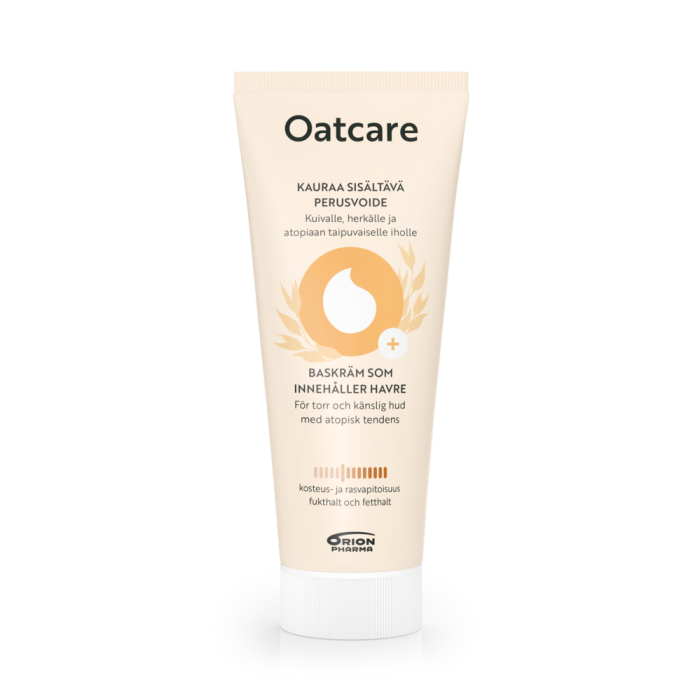 Oatcare perusvoide on täyteläinen ja sisältää kauraa, glyserolia, ksylitolia ja karitevoita. Voide rauhoittaa ärtynyttä ihoa ja sopii kuivalle, herkälle sekä atoopiaan taipuvaiselle iholle ja se on hajustamaton.
