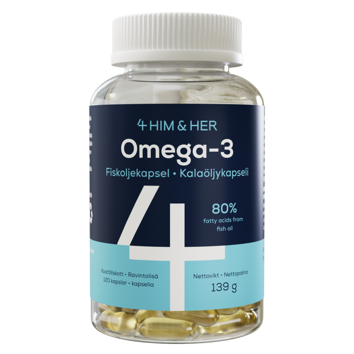 Omega 3 -rasvahappoja sisältävä ravintolisä.