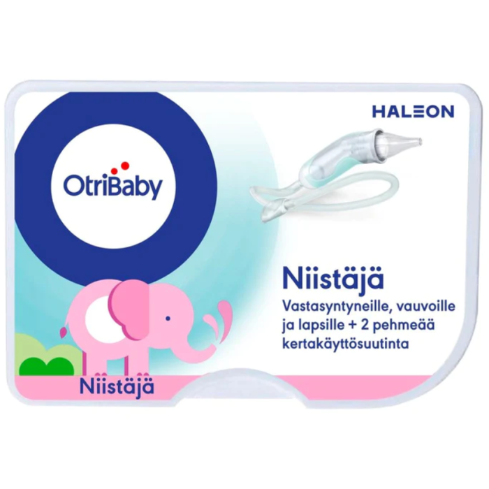 OtriBaby Niistäjä vastasyntyneille, vauvoille ja lapsille. Niistäjän käyttöä suositellaan, kun lapsen nenä on tukossa ja sitä voidaan käyttää niin usein kuin tarpeellista, erityisesti ennen kuin lapsi syö tai menee nukkumaan. Tuote on kehitetty avuksi lapsen nenän puhdistamiseen, jotta nenän eritteet voidaan poistaa varovasti. Helppo ja hygieeninen käyttää. OtriBaby Niistäjä auttaa lasta hengittämään, syömään, nukkumaan normaalisti ja tuntemaan olonsa paremmaksi. Kenellä on käyttöä OtriBaby Niistäjälle? Tämä tuote on tarkoitettu niille, jotka eivät osaa itse niistää nenäänsä, kuten vastasyntyneet, vauvat ja lapset. Sinun pitää kuitenkin kysyä neuvoa lääkäriltä, ennen kuin käytät sitä vastasyntyneelle lapselle. Kuka saa käyttää OtriBaby Niistäjää? Turvallisuussyistä OtriBaby Niistäjää saa käyttää vanhempi tai huoltaja, joka osaa lukea ja ymmärtää pakkausselosteen, joka erottaa suun, nenän, korvat ja silmät ja ymmärtää perushygienian käsitteet. OtriBaby Niistäjän pakkauksessa on mukana