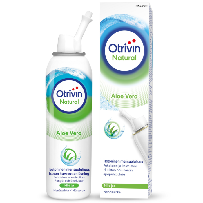 - Puhdistamaan hellästi tukkoista nenää esim. vilustumisen tai allergiaoireiden yhteydessä. Otrivin Natural Aloe Vera huuhtoo pois ylimääräistä limaa tai allergiaa aiheuttavia hiukkasia, kuten pölyä tai siitepölyä.