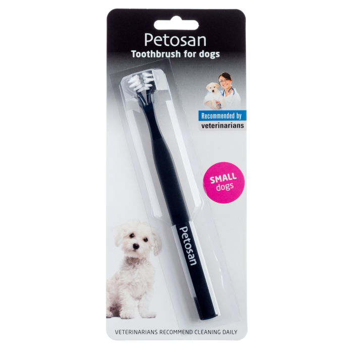 Erikoismuotoiltu hammasharja puhdistaa sekä ienrajasta, että molemmin puolin hammasta mahdollisimman vähin vedoin. Säännöllisellä harjauksella ehkäistään plakin ja hammaskiven muodostumista, jotka aiheuttavat pahan hajuista hengitystä ja iensairauksia. Koko S, 3-6 kg koirille.