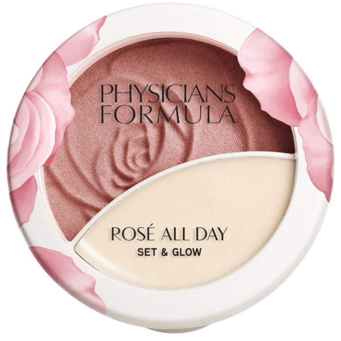 Physicians Formula Rosé All Day Set & Glow on ihastuttava valoa tuova viimeistelypuuterin ja voidemaisen highlighterin yhdistelmä. Tämä 2-in-1 tuote viimeistelee meikin ja tuo samalla kaunista hehkua kasvoille.