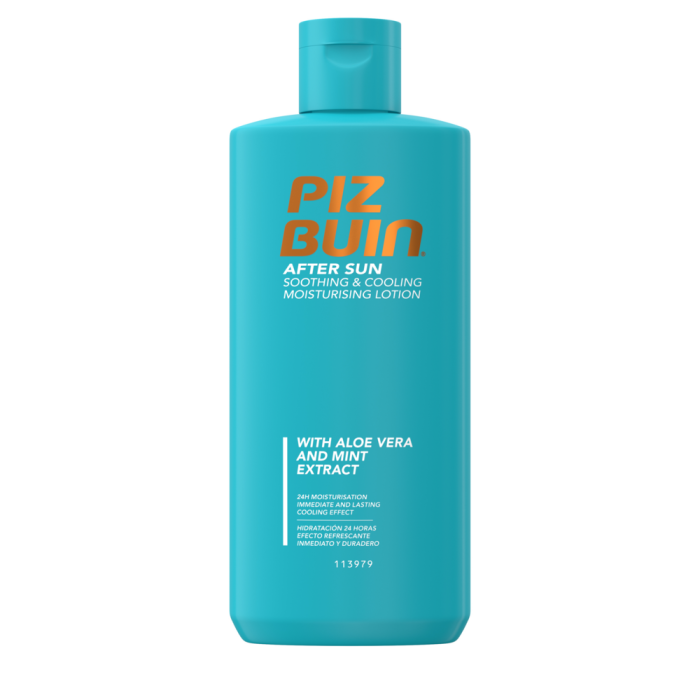 Piz Buin After Sun Soothing & Cooling Lotion kosteuttaa 24 h palauttaen auringon rasittaman ihon luonnollisen kosteustasapainon. Auttaa ehkäisemään ihon kuoriutumista edistäen kestävämpää rusketusta. Sisältää aloe veraa ja minttu-uutetta. Raikas, nopea ja pitkäkestoinen viilentävä vaikutus. Imeytyy nopeasti, ei jätä rasvaista tuntua.