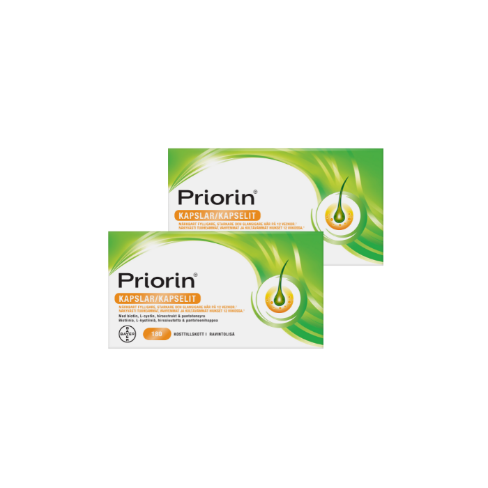 Priorin on hiusravintolisä, joka ravitsee hiuksia sisältäpäin kliinisesti tutkitulla koostumuksella. Tämä 180 kapselin taloudellinen pakkaus riittää kolmen kuukauden tehokuuriin.