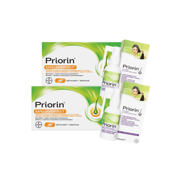 Priorin edustaa tieteellisesti todistettua lähestymistapaa hiusten hyvinvoinnin tukemiseen. Bayerin kehittämä ravintolisä perustuu kliiniseen tutkimukseen, jossa 109 testihenkilöllä saavutettiin näkyviä tuloksia 12 viikon käytön jälkeen. Tuote sisältää huolellisesti valitun yhdistelmän biotiinia, joka edistää hiusten pysymistä normaaleina, sekä hirssiuutetta ja pantoteenihappoa hiusjuurten ravitsemiseen.