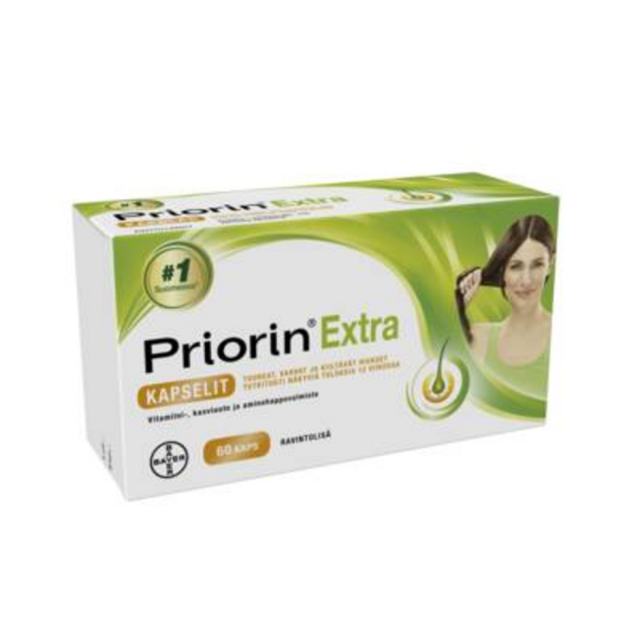 Priorin® Extra -kapselit ravitsevat hiusjuuria sisältäpäin. Priorin® Extra on vitamiini-, kasviuute- ja aminohappovalmiste. Kapselit sisältävät mm. biotiinia, joka edistää hiusten pysymistä normaaleina.
