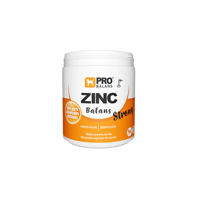 Sinkki ylläpitää turkin ja ihon hyvinvointia. Se on tehokas apu iho- ja karvaongelmiin sekä kuiville anturoille ja halkeileville kynsille. ZINCbalans-sinkkijauhe on helppo ja turvallinen annostella koiran painon mukaan pakkauksen mittalusikalla. Zincbalansia voidaan antaa kuurina karvanvaihdon yhteydessä sekä näyttelyihin valmistauduttaessa. Se sopii myös jatkuvaan käyttöön esimerkiksi koti- ja raakaruokavalion sinkkilisänä.