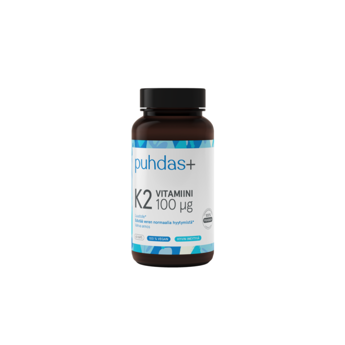 Puhdas+ K2-vitamiini on vahva K-vitamiinivalmiste. Tuotteen sisältämä MenaQ7-menakinoni on luonnollinen K2-vitamiini, jonka elimistö käyttää tehokkaasti hyödykseen.