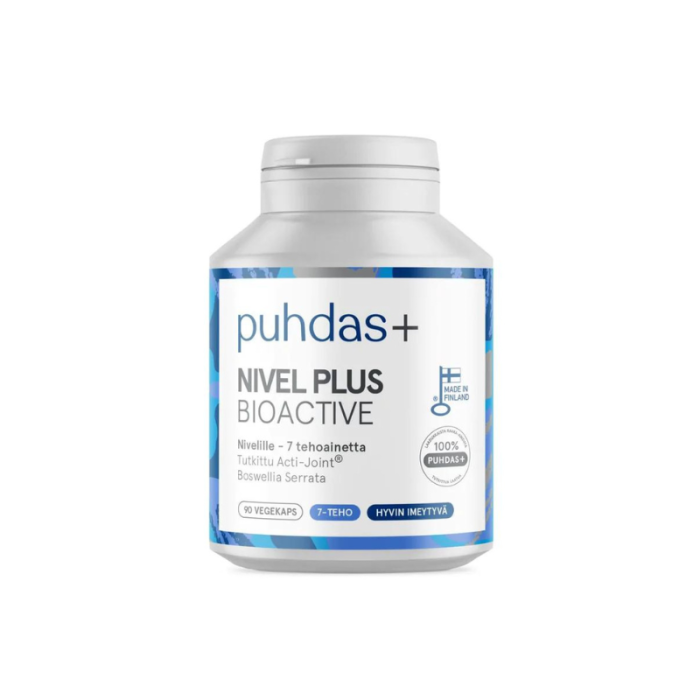 Suomessa kehitetty Puhdas+ Nivel Plus BIOACTIVE on korkealaatuinen ravintolisä. Sen valmistuksessa ei käytetä ylimääräisiä turhia ainesosia, kuten säilöntä-, väri- tai pintakäsittelyaineita.