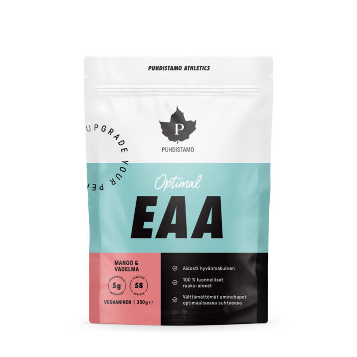 Välttämättömät aminohapot (EAA) ovat aminohappoja, joita keho ei pysty itse tuottamaan, joten ne täytyy saada ravinnosta. Puhdistamon EAA-juomajauhe sisältää kahdeksaa tärkeää aminohappoa vapaassa muodossa, mikä takaa nopean ja tehokkaan imeytymisen.