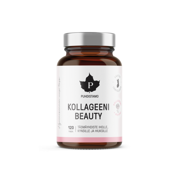 Puhdistamon Kollageeni Beauty -kapseli on maailman tutkituimman VERISOL®-kollageenipeptidin, C-vitamiinin, Tripla Sinkin™ sekä biotiinin täsmäyhdistelmä kauneudenhoitoon kätevässä kapselimuodossa. Tuotteen sisältämä C-vitamiini tehostaa kehon omaa kollageenituotantoa, sinkki vahvistaa kynsiä ja biotiini huolehtii ihon sekä hiusten kunnosta.