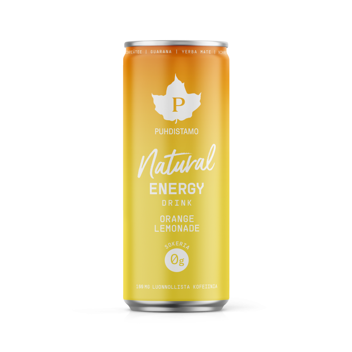 Puhdistamon Natural Energy Drink Orange Lemonade on uuden ajan energiajuoma, jonka kaikki ainesosat ovat peräisin luonnosta.