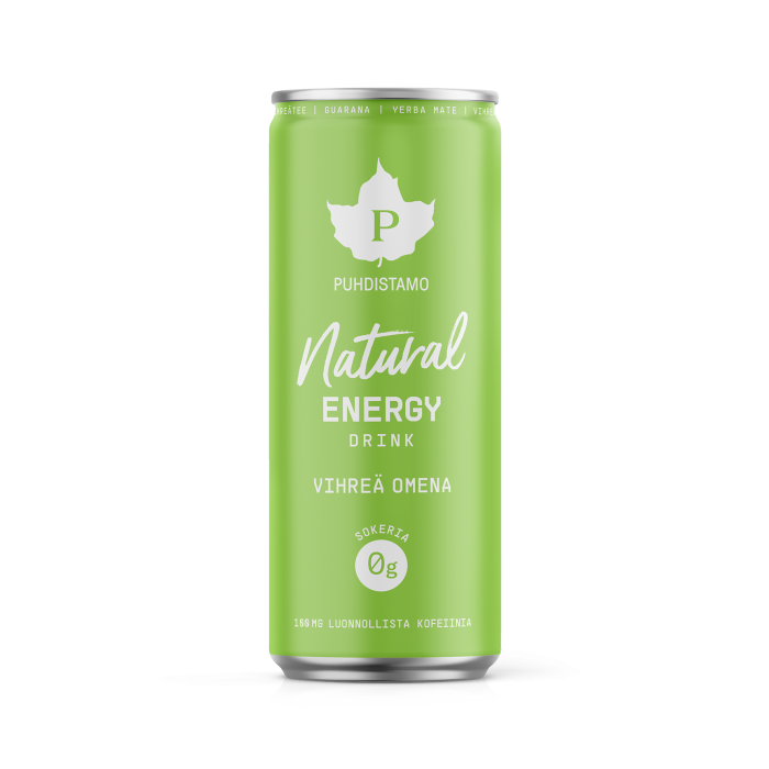 Puhdistamon Natural Energy Drink Vihreä omena on uuden ajan energiajuoma, jonka kaikki ainesosat ovat peräisin luonnosta.