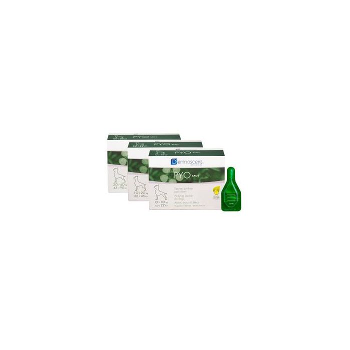 Spot-on – valmiste ihoinfektioiden tukihoitoon. PYOspot on paikallisvaleluliuos, joka on tarkoitettu erityisesti koirille, joilla on taipumusta bakteeri- tai sieniperäisiin ihoinfektioihin. PYOspot puhdistaa, rauhoittaa ja kosteuttaa ihoa. Tuotetta voidaan käyttää joko ennaltaehkäisevästi tai tukihoitona bakteeri- ja sienilääkityksen yhteydessä.