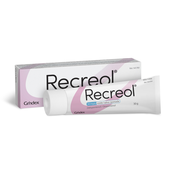 Recreol-voidetta käytetään eri syistä aiheutuneiden pinnallisten ihovaurioiden tukihoitoon. Voide kosteuttaa ihon pintakerrosta ja tukee sen paranemista sekä hillitsee tulehdusta ja kutinaa.