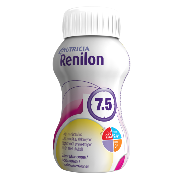 Renilon 7.5 on käyttövalmis kliininen ravintovalmiste, joka on tarkoitettu dialyysivaiheessa olevan munuaispotilaan ruokavaliohoitoon. Sisältää runsaasti energiaa ja proteiinia sekä erittäin niukasti fosforia eikä sisällä A- ja D-vitamiinia.
