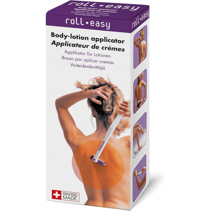 Roll Easy-voiteenlevitin & pesuapu on kätevä ratkaisu voiteiden, emulsioiden tai suihkugeelien levittämiseen vaikeasti tavoitettaville alueille, kuten selkään, jalkoihin tai jalkateriin. Roll Easyn käyttö tarkoittaa itsenäistä itsestä huolehtimista. Roll Easy on suunniteltu käden jatkeeksi. Sen pitkä 37 cm:n kahva (avattuna) ja kääntyvä, kallistuva pää linjautuvat kehon eri alueisiin, jolloin päivittäinen hygienian ja ihonhoito helpottuvat. Erilaisten vaihdettavien applikaattoreiden ansiosta Roll Easya voidaan käyttää eri tavoin: Voiteiden ja emulsioiden levitys: Hierontarullat levittävät tuotteen tasaisesti, mikä takaa taloudellisen levityksen ilman sotkua. Hetki hyvinvointia: Rullat tarjoavat samalla miellyttävän hieronnan stimuloiden pintaverenkiertoa. Suihkussa: Kylpysieni auttaa saippuoimaan selän ja jalat ilman ulkopuolista apua. Voit huolehtia päivittäisestä henkilökohtaisesta hygieniastasi ilman apua tai vaivaa niin kotona kuin matkoilla.
