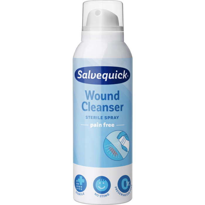 SalvequickMed Wound Cleanser Sprayn avulla on helppoa ja kivutonta puhdistaa haavat. Puhdistusaine on steriiliä, fysiologista keittosuolaliuosta NaCl (0,9%). Pullon rakenne mahdollistaa haavanpuhdistusaineen säilymisen steriilinä viimeiseen pisaraan saakka ja sen suihkuttamisen kaikkiin suuntiin. Lempeä suihkusuutin poistaa tehokkaasti lian ja bakteerit haavasta ja edistää kehon omaa paranemisprosessia. Ei kirvele eikä ärsytä ihoa ja sopii myös lapsille. Ilman säilöntäaineita. CE-merkitty lääkinnällinen laite. CE 0481. Valmistaja: Orkla Care Ab