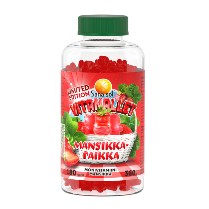 Sana-Sol Vitanallet Mansikkapaikka monivitamiini 180 kpl