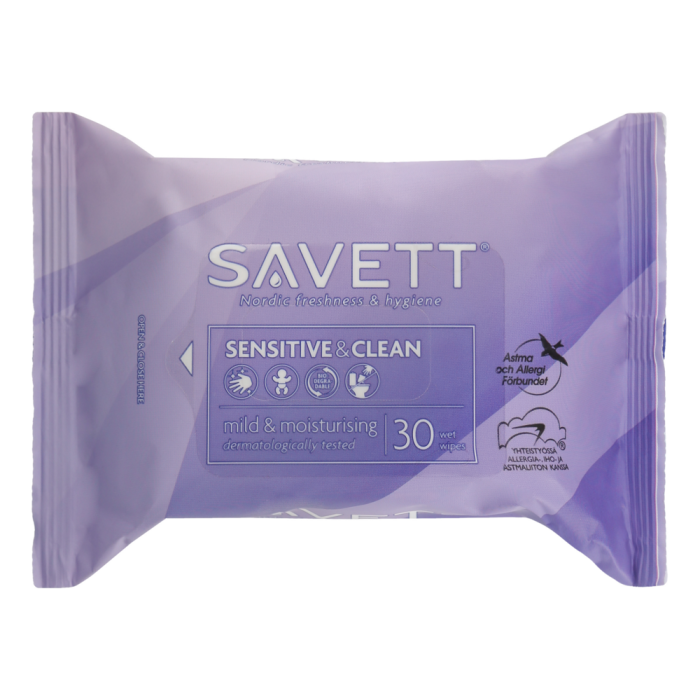 Savett Sensitive & Clean uudelleensuljettava kosteuspyyhe 30 kpl