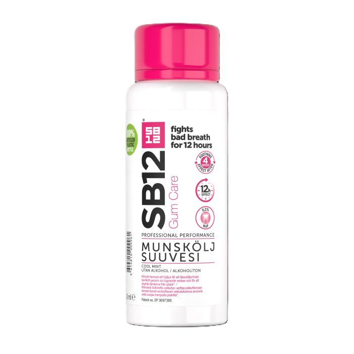 SB12 Gum Caren vaikutus on välitön ja antaa miellyttävän hengityksen 12 tunniksi. Sisältää 0,2 % fluoria, joka vahvistaa hampaita ja auttaa ehkäisemään hampaiden reikiintymistä. SB12 Gum Care:n on kliinisesti todistettu vähentävän plakin muodostumista ensimmäisestä käyttökerrasta lähtien ja sillä on rauhoittava vaikutus. Tuote auttaa myös palauttamaan ja ylläpitämään terveitä ikeniä.
