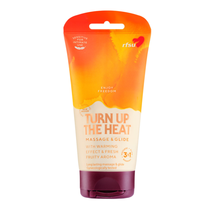 Turn up the heat Massage glide on suunniteltu koko vartalon hierontaan ja liukuvoiteeksi intiimialueille. Tuotteen sisältämä inkivääri lämmittää ihanasti. Raikkaan tuoksuisella, vesipohjaisella ja hellävaraisella geelillä on ihanteellinen pH-arvo. Voidaan käyttää kondomin ja seksilelujen kanssa. Dermatologisesti ja gynekologisesti testattu Ei sisällä hormoneja tai parabeeneja Ei sisällä siittiöitä tuohoavaa ainetta Ei sisällä eläinperäisiä ainesosia Väritön ja helppo pestä pois