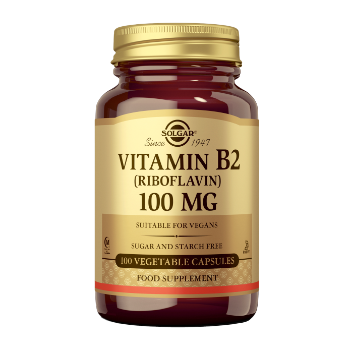 Solgar® B2-vitamiini 100 mg sisältää B2-vitamiinia, eli riboflaviinia, joka kuuluu B-vitamiinien ryhmään. B2-vitamiini toimii tärkeänä osatekijänä kehossa aina energiantuotannosta silmien ja ihon hyvinvointiin.
