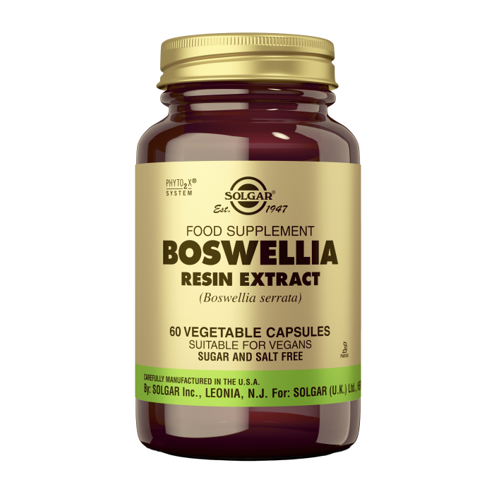 Boswellian pihka on saatu Boswellia-puista, ja se tunnetaan myös nimellä Frankincense. Puu on kotoisin Intiasta ja siitä saadun pihkan sisältämillä yhdisteillä tiedetään olevan terveydelle hyödyllisiä vaikutuksia. Boswelliaa löytyy yli 20 erilaista lajia. Pihkaa tuottavista tehdään öljyjä, jotka luokitellaan eri laatuihin riippuen sadonkorjuuajasta, uuttamisesta ja prosessoinnista sekä öljyn puhtaudesta. Solgar® Boswelliauute on valmistettu Boswellia Serratasta, joka sisältää eniten pihkan hyödyllisiä yhdisteitä. Boswelliaa on käytetty vuosisatojen ajan, ja sen tiedetään tukevan mahdollisesti nivelten terveyttä.