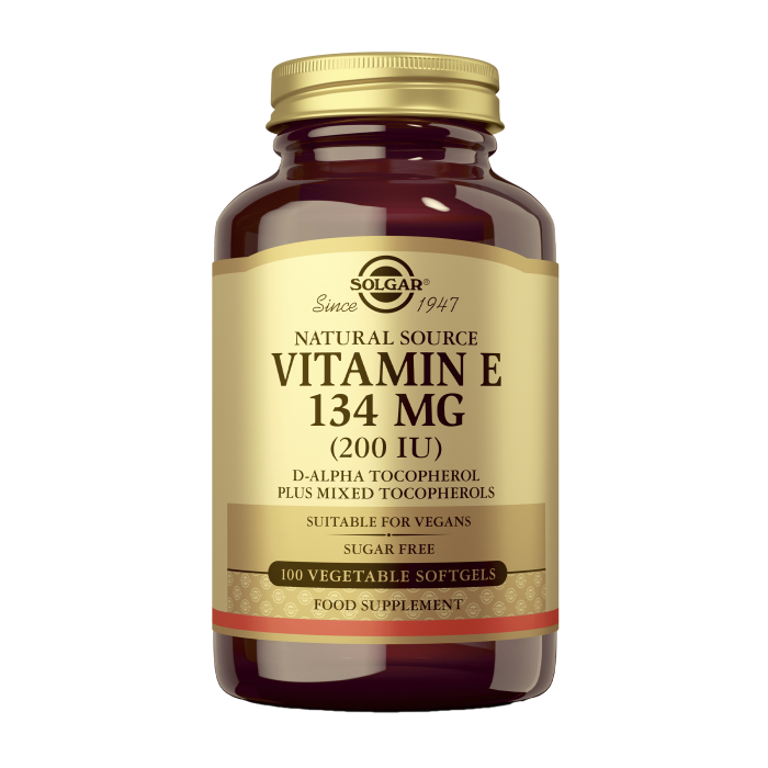 Solgar® Natural Source Vitamin E 134 mg (400 IU) (vege) sisältää luontaisia E-vitamiineja kasviperäisessä softgelkapselissa auttaen suojaamaan kehon soluja vapaiden radikaalien aiheuttamalta hapetusstressiltä. Vapaat radikaalit ovat epävakaita molekyylejä, jotka voivat vahingoittaa kehon soluja ja jotka liittyvät ennenaikaiseen ikääntymiseen. Vapaita radikaaleja muodostuu esimerkiksi, kun kehomme muuntaa syödyn ruuan energiaksi tai kun olemme alttiina ilmansaasteille ja auringon ultraviolettivalolle.